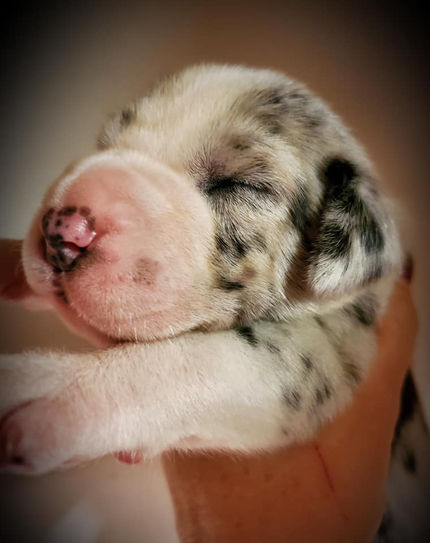 Expecting Solids, Harlequins, & Merles in Blues, blacks, blue fawn, and possibly tan point (see our previous litter pics)